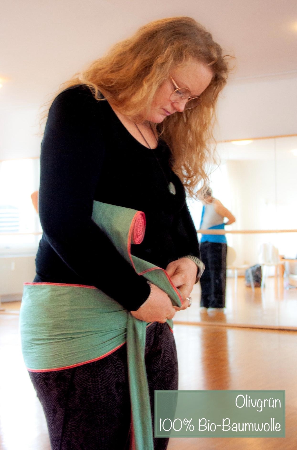Zur Unterstützung der Rückbildung wird das Tuch etwa 4-6 Wochen und mindestens 3 Mal die Woche getragen.